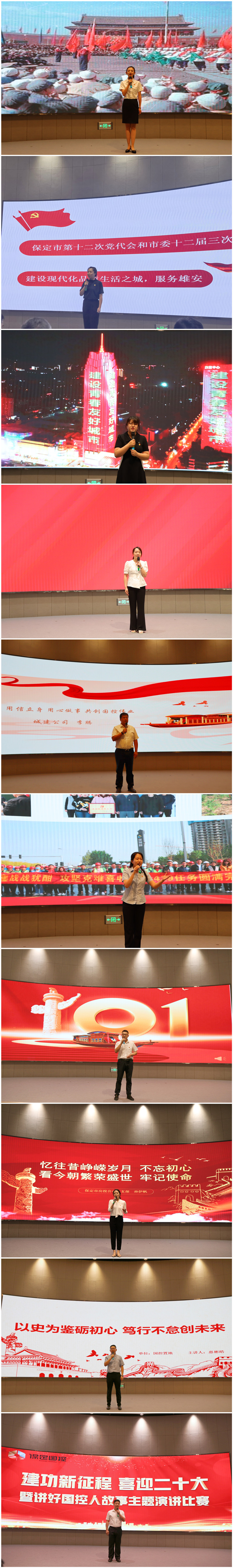 來(lái)自集團(tuán)部室、各子公司的十名選手緊貼工作實(shí)際,結(jié)合所思所悟,以飽滿真摯的情感、平實(shí)生動(dòng)的語(yǔ)言講述著黨的光榮歷史和身邊的動(dòng)人事跡,表達(dá)了在“激情奮進(jìn)十四五、再造一個(gè)新保定”號(hào)召下國(guó)控人為現(xiàn)代化品質(zhì)生活之城建設(shè)賦能的信心與決心。從集團(tuán)成立之初的艱辛探索到相繼承接保定市系列重點(diǎn)建設(shè)項(xiàng)目,從“市委有號(hào)令、政府有部署、國(guó)控見行動(dòng)”的無(wú)畏擔(dān)當(dāng)?shù)健芭c時(shí)間比進(jìn)度、與機(jī)遇搶速度、與困難拼力度”的拼搏付出,國(guó)控六年的成長(zhǎng)與新時(shí)代保定的發(fā)展如影隨形,國(guó)控六年的創(chuàng)業(yè)史就是全體黨員職工的奮斗史,他們或是攻堅(jiān)在項(xiàng)目一線,凝心聚力、日夜鏖戰(zhàn),用實(shí)際行動(dòng)踐行著“綻放新顏值、跑出加速度”的國(guó)企使命;或是以執(zhí)著的敬業(yè)精神、過(guò)硬的專業(yè)素質(zhì),日復(fù)一日在平凡崗位上書寫著合格國(guó)控人的精彩篇章。一個(gè)個(gè)鮮活的事例和身邊故事傳遞著愛(ài)黨愛(ài)企愛(ài)崗的正能量,深深感染了在場(chǎng)的每一位員工,贏得了評(píng)委、觀眾們的掌聲和共鳴。