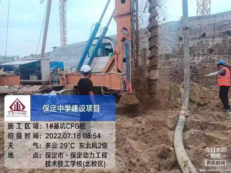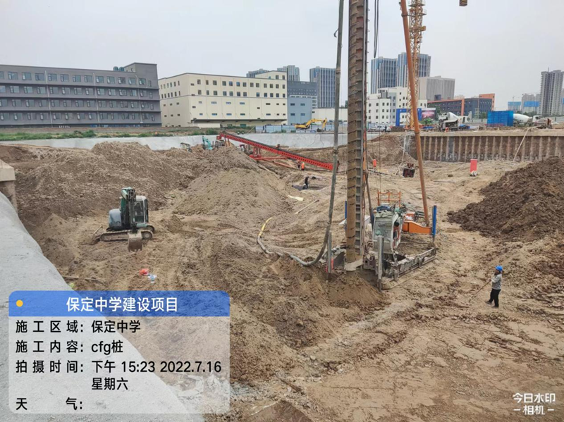 2022年7月16日,隨著最后一根CFG樁澆筑完畢,保定中學建設(shè)項目CFG樁施工任務(wù)圓滿完成,這標志著項目地基處理全部完成隨即進入基礎(chǔ)施工階段,為后續(xù)工程建設(shè)奠定了堅實基礎(chǔ)。