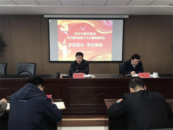 按照市委統(tǒng)一安排部署,經(jīng)集團(tuán)黨委研究,11月23日上午,集團(tuán)召開(kāi)十九大宣講,由總經(jīng)理謝鵬主持,董事長(zhǎng)陳樹(shù)存做宣講報(bào)告。