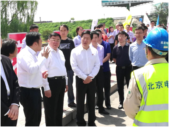 為加快推進(jìn)保定市雙源無軌電車項(xiàng)目建設(shè),5月22日上午,保定市委副書記、市長郭建英與北京公交集團(tuán)黨委書記、董事長王春杰一行到項(xiàng)目施工現(xiàn)場視察工作。