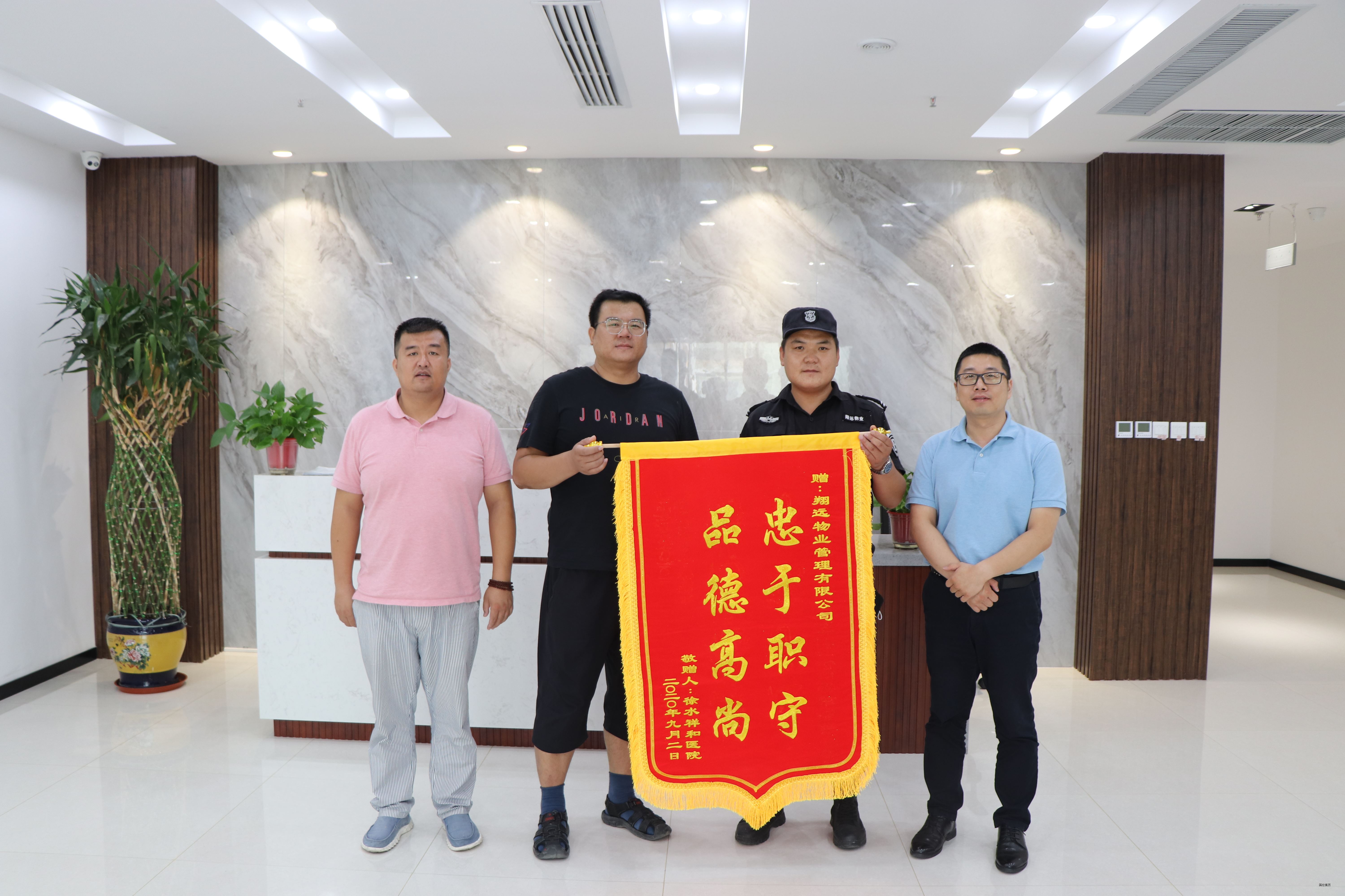 9月2日上午,一位男士手捧一面“忠于職守,品德高尚”的錦旗敲響翔遠(yuǎn)物業(yè)辦公區(qū)的門(mén),進(jìn)門(mén)后非常激動(dòng)的說(shuō):“感謝貴公司領(lǐng)導(dǎo)及保安人員周再,幫我看護(hù)車輛保管物品?!?/span>